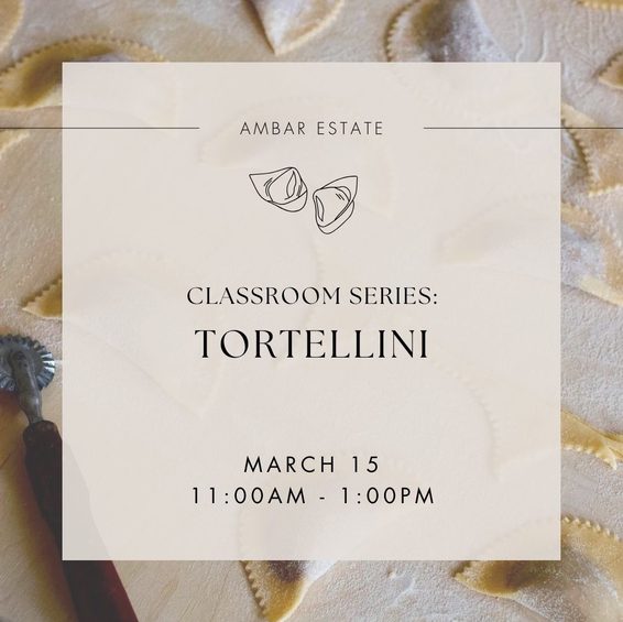 Guided by Chef Heidi, guests will craft their own take-home tortellini pasta from start to finish and then enjoy a multi-course lunch paired with Ambar Estate wines.