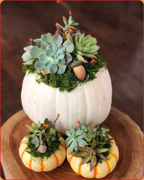 Each guest will choose from a variety of pumpkins and colors, along with a beautiful selection of succulents and natural accents.